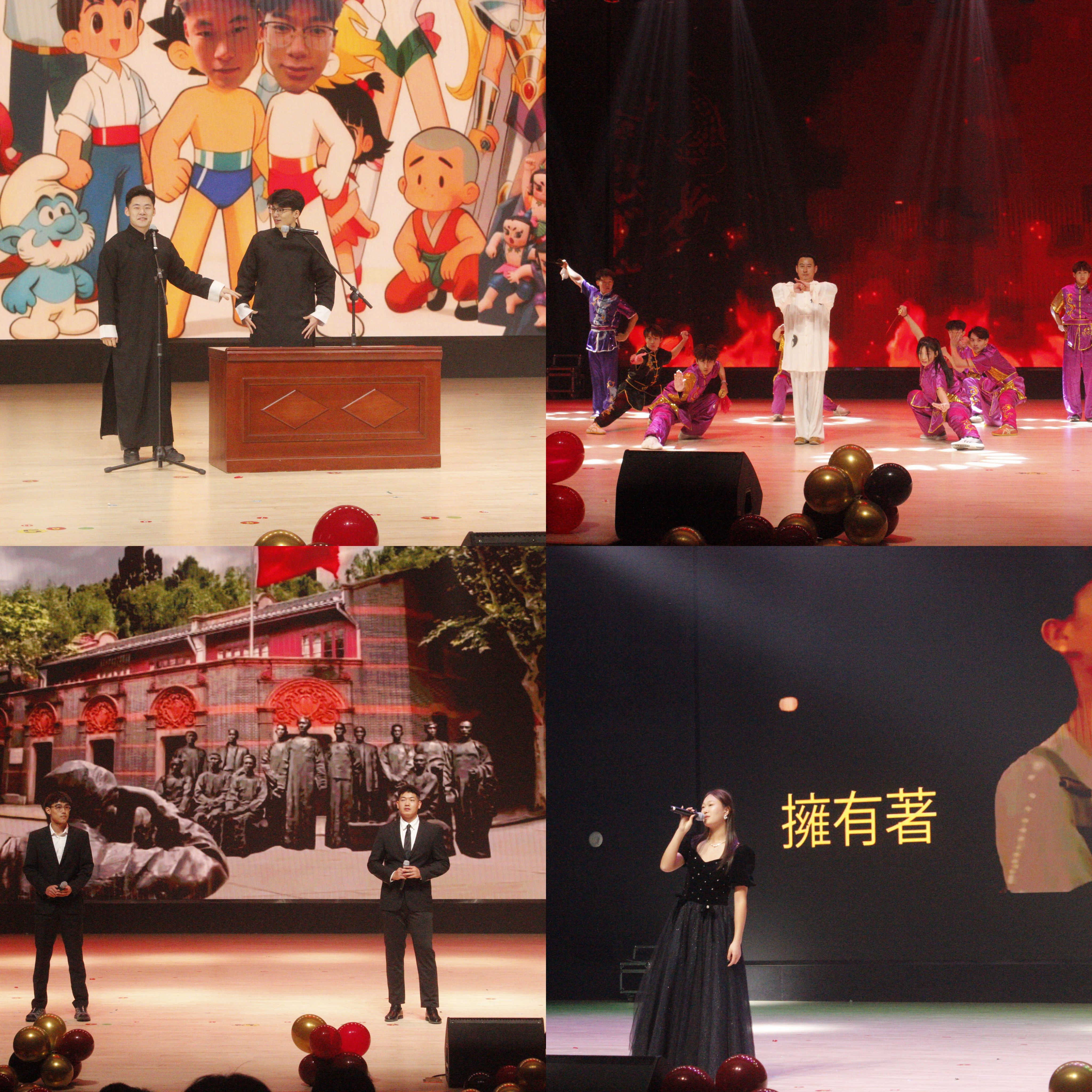 整场晚会节目内容丰富多元、形式新颖多样,军歌嘹亮、相声诙谐、歌声婉转、舞姿灵动,充分展现了体育学院师生的多才多艺与青春活力。其中,由林邵武老师领衔表演的武术节目,动作刚劲有力、招式行云流水,尽显中华武术的博大精深与独特魅力,赢得现场观众阵阵掌声;晚会特别邀请到第十五届全运会网球裁判沈晨老师、乒乓球金牌女团山东队队医郭佳俊同学带来主题演讲,分享体育赛事中的奋斗故事与责任担当,引发全场师生强烈共鸣。各类节目或激昂奋进、或温馨感人、或幽默风趣,全方位展现了新时代体院学子积极向上、阳光开朗的精神风貌。