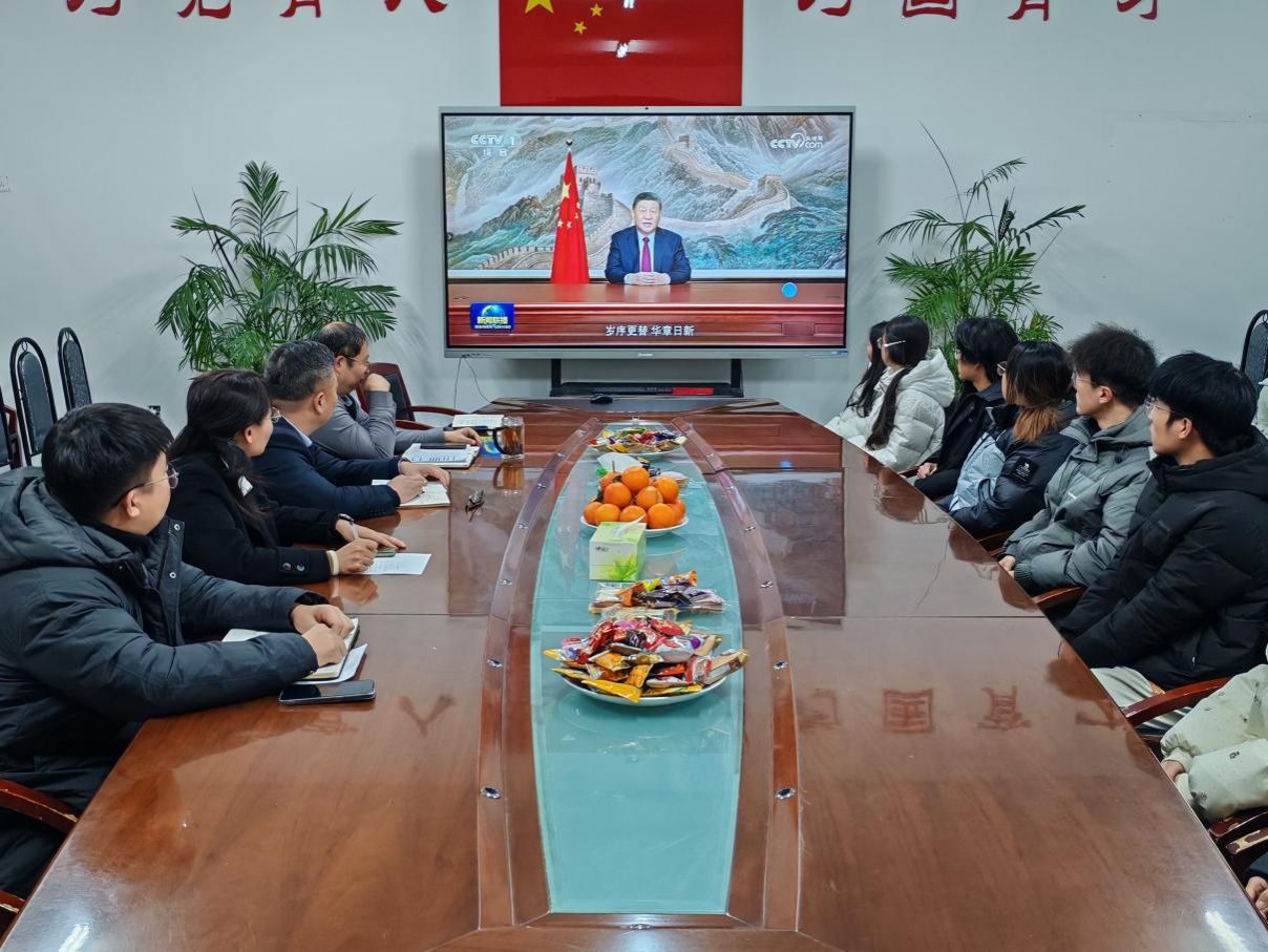 聆听领袖新年讲话,激发爱党爱国情怀,铸牢中华民族共同体意识。12月31日晚,人文与传播学院四楼会议室座无虚席,该院数十名汉族、维吾尔族、回族、壮族、布朗族、穿青人等多民族(族群)师生齐聚一堂,通过收看央视《新闻联播》节目,聚精会神聆听国家主席习近平发表的2026年新年贺词。该院党委副书记、院长张颖慧,院党委副书记徐俊凯以及院团委书记倪召欣出席活动,党委书记王永超主持活动并作总结讲话。