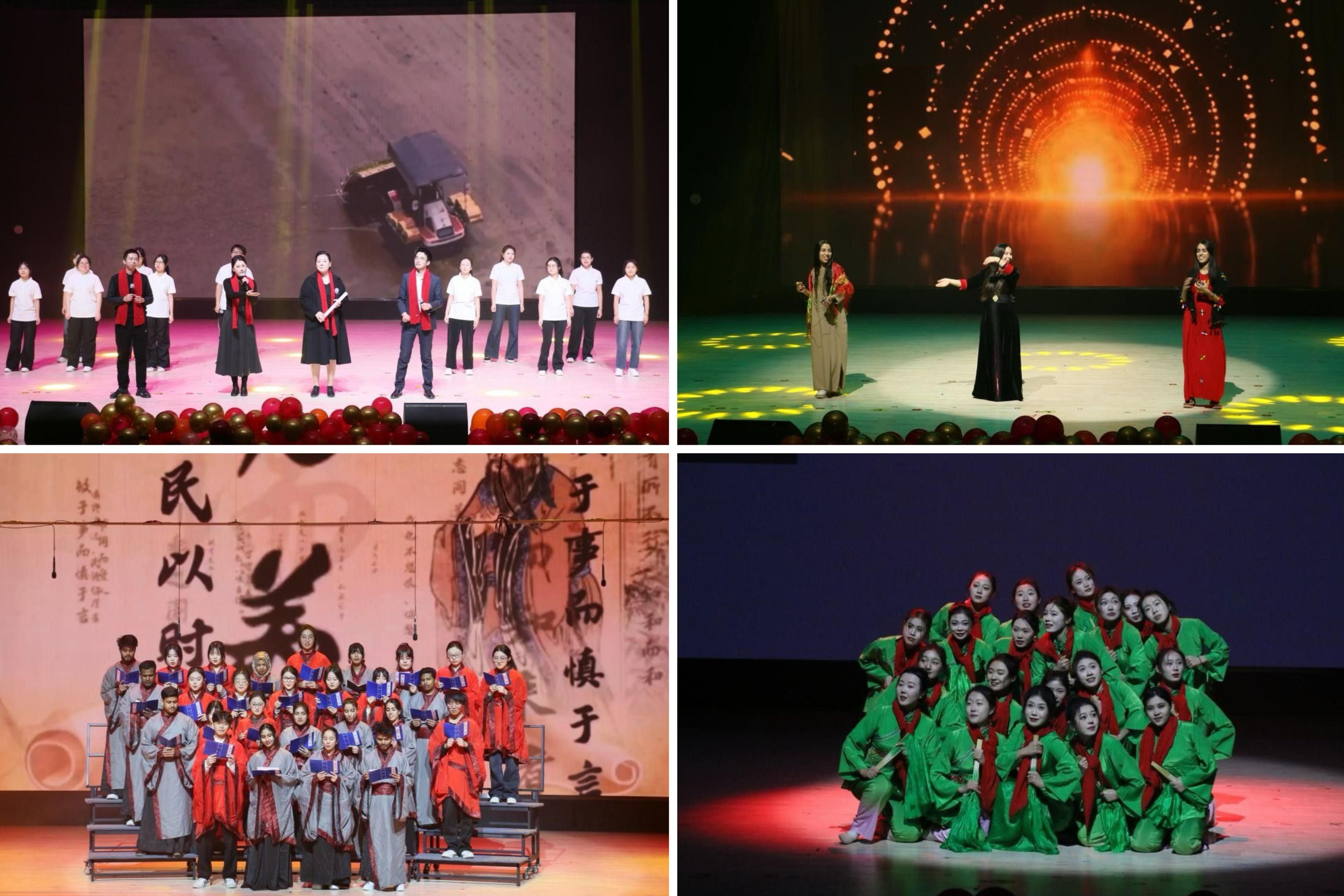 节目展演环节亮点纷呈,中外学子同台献艺,用多元艺术形式演绎文化之美。开场舞《古扎丽古丽》由音乐学院23级舞蹈学女2班学子倾情演绎,灵动的舞姿拉开晚会序幕。紧接着,外国语学院学生与国际教育学院留学生携手带来的《论语传唱》,将儒家经典的智慧与韵味娓娓道来,让中华优秀传统文化在青年一代的演绎中焕发新生。室内乐《权力的游戏》奏响恢弘乐章,歌曲串烧则汇聚了中外学子的深情演唱,不同语言的歌声交织共鸣,展现了音乐无国界的魅力。