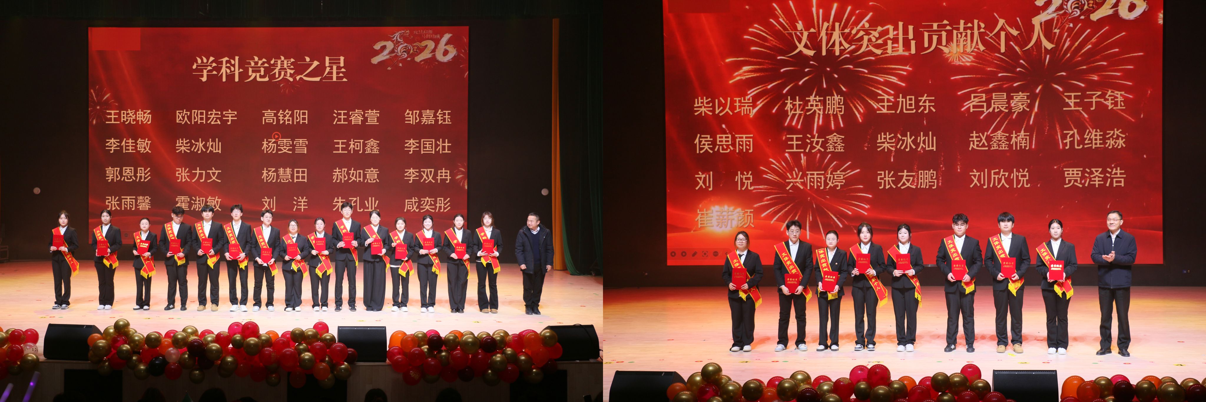 1月6日晚,外国语学院与国际教育学院联合举办的 2026 年新年联欢晚会暨表彰大会顺利举行。两院师生代表与来自蒙古国、非洲、中东等多个国家的留学生齐聚一堂,在中外文化的碰撞与交融中,共贺新年、共话传承。外国语学院和国际教育学院领导班子成员参加活动。