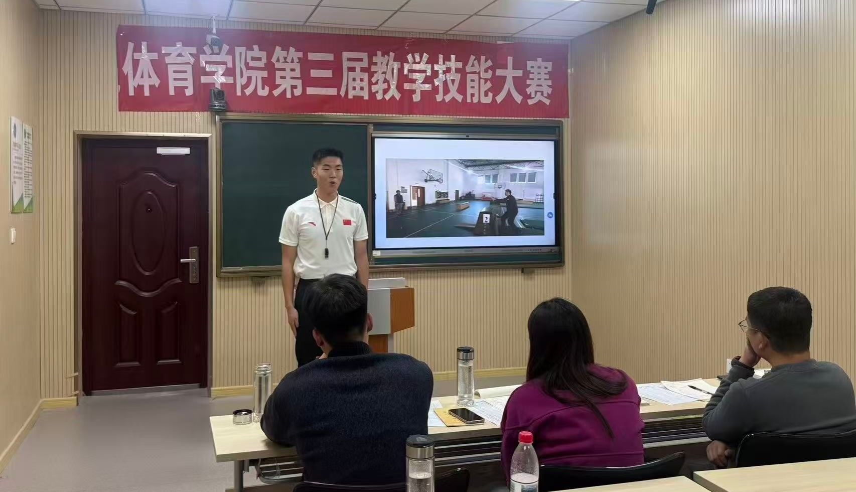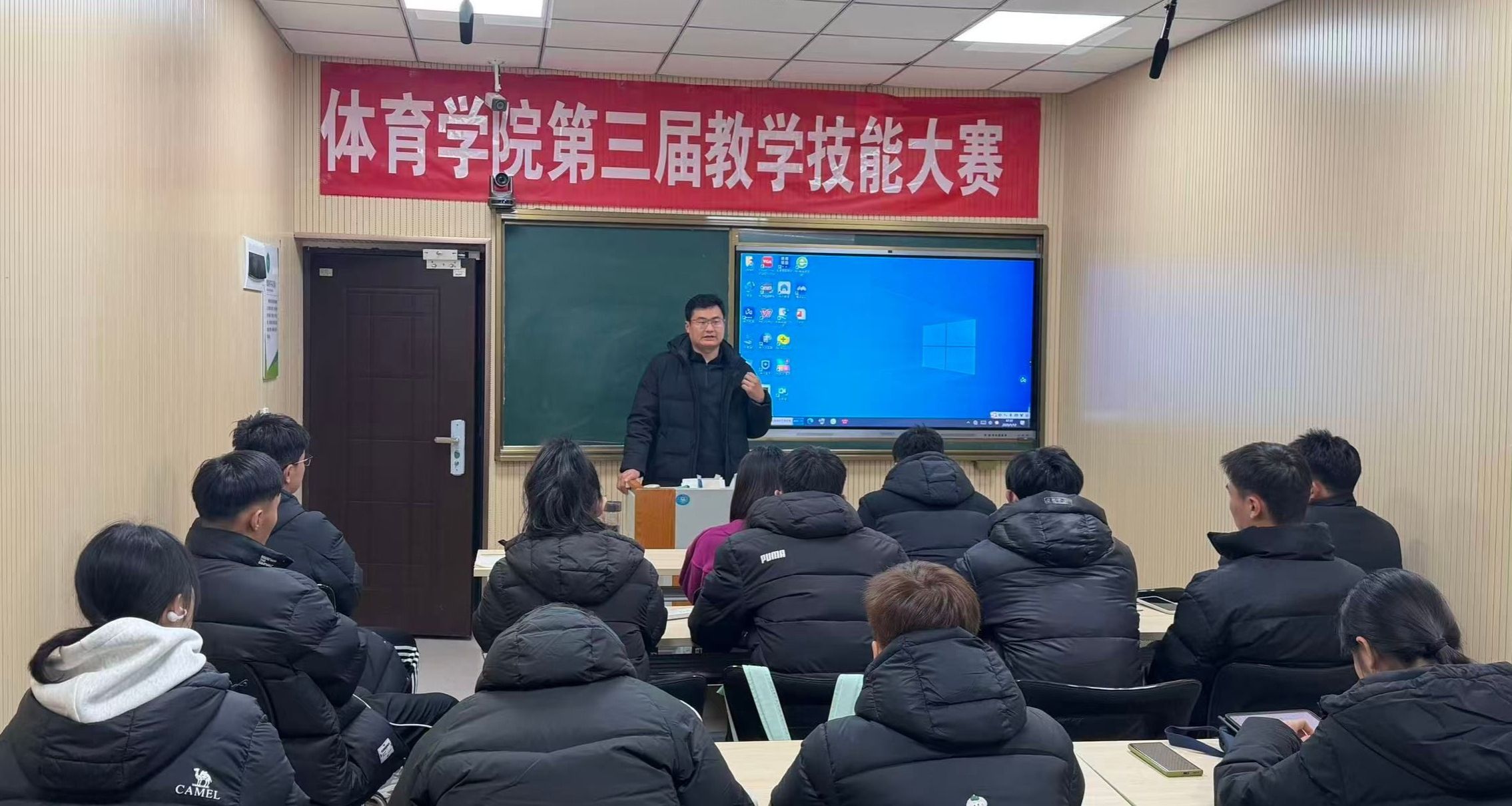 为全面展示体育教育专业教学成果,锤炼学生教学实践能力,为后续教育实习及省级赛事储备优质人才,1月12日下午,体育学院第三届教学技能大赛在2号楼微格教室顺利举办。体育教育专业23级、25专升本共计59名选手同台竞技,以赛会友、以赛促学。