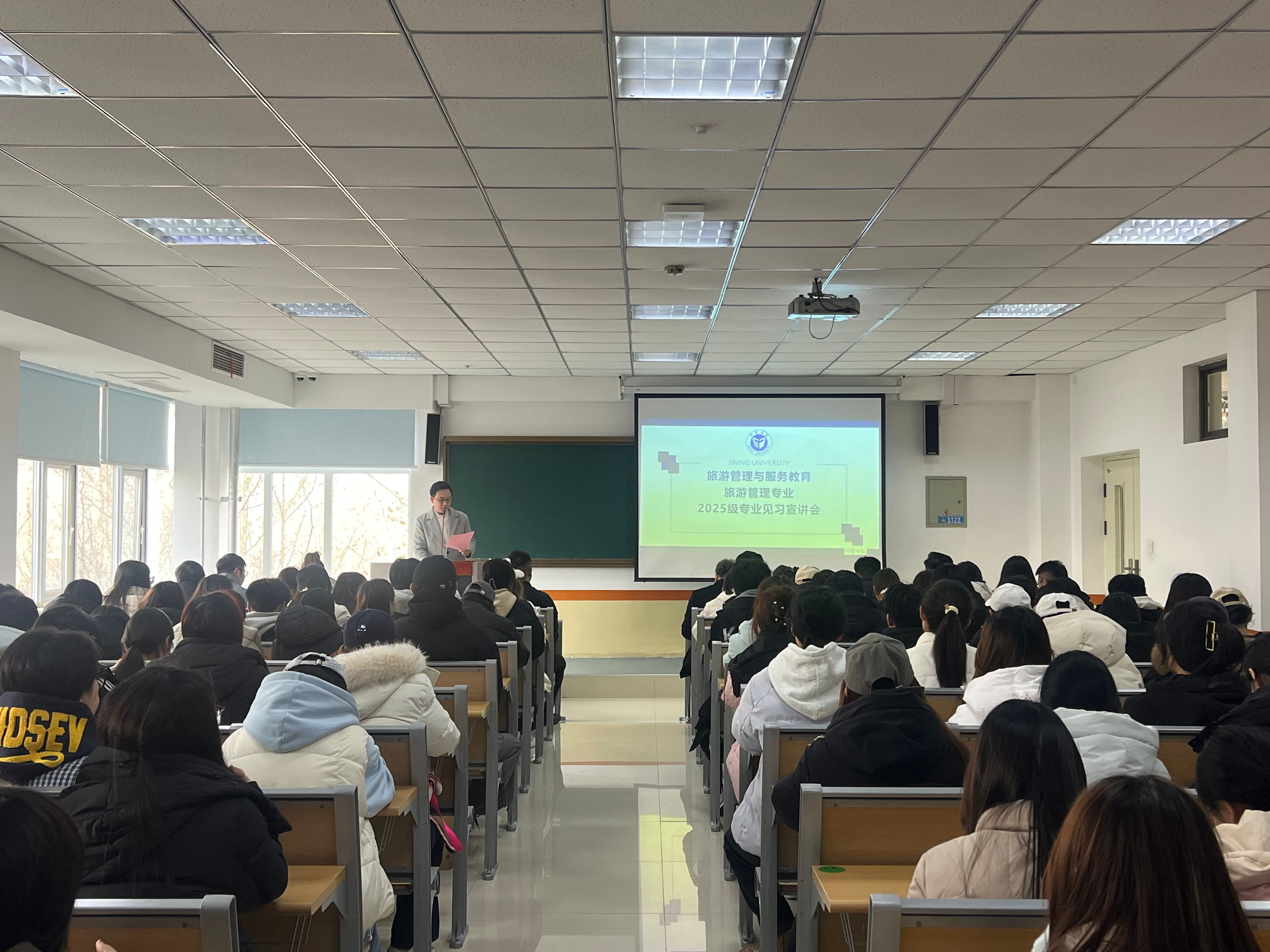 1月16日,经济管理学院成功举办旅游管理与服务教育及旅游管理专业2025级专业见习宣讲会。济宁运河研学中心、济宁政德文化服务中心、济宁华园京杭文化旅游有限公司、济宁运河文化旅游开发有限公司等四家校企合作单位代表,经济管理学院党委书记乔东华、院长霍雨慧、党委副书记岳现超、副院长董腾、旅游管理专业负责人赵月阳、辅导员徐纪元、王慧以及旅游管理与服务教育专业和旅游管理专业2025级全体学生共同参加本次宣讲会。