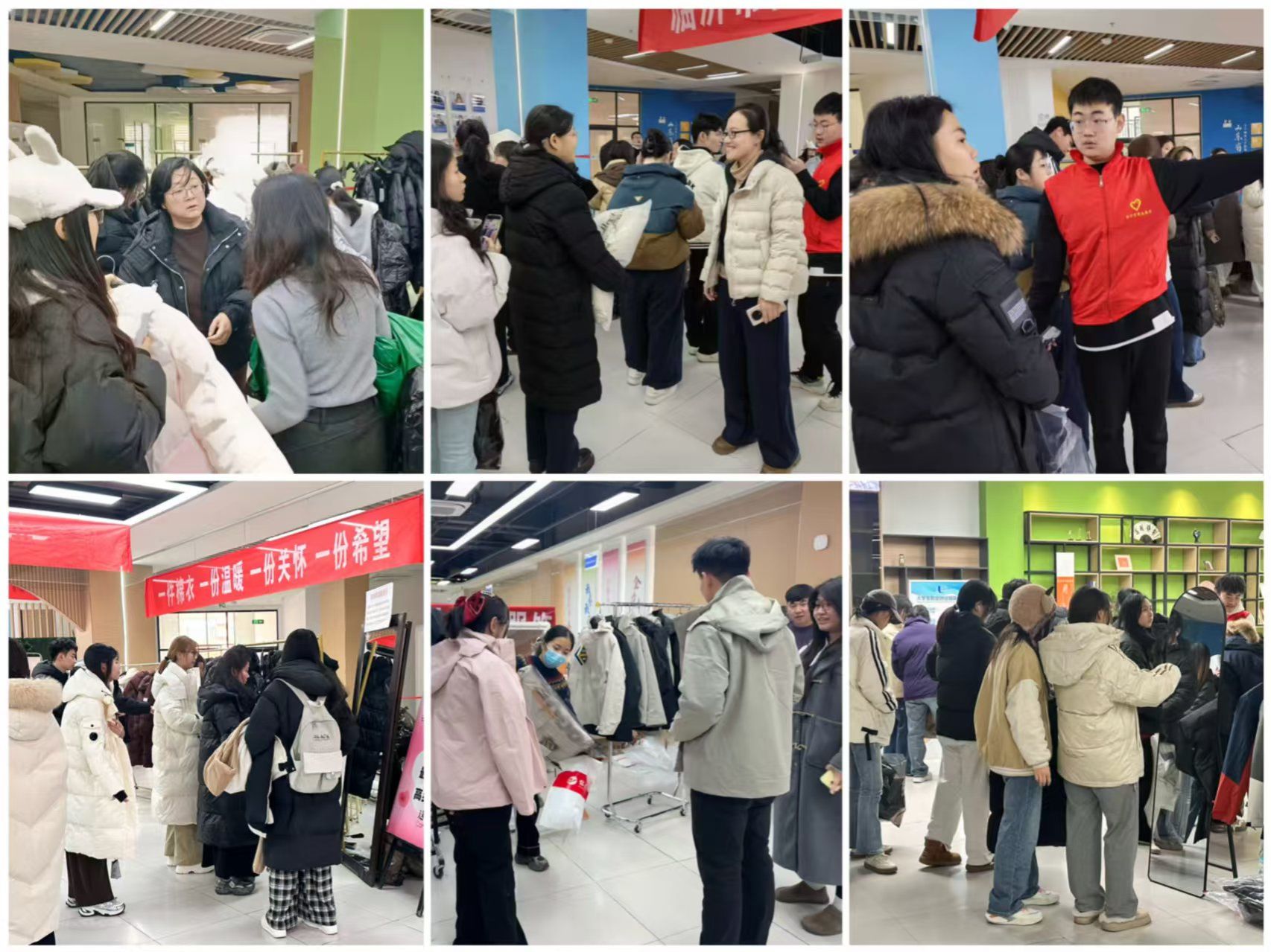 为充分满足学生个性化穿着需求,学校精心遴选多家供应商,集中提供羽绒服、冲锋衣、棉服等多款御寒衣物,款式新颖、色彩丰富,打造校园“移动衣物卖场”。活动现场,学子有序挑选、试穿衣物,脸上洋溢着喜悦。