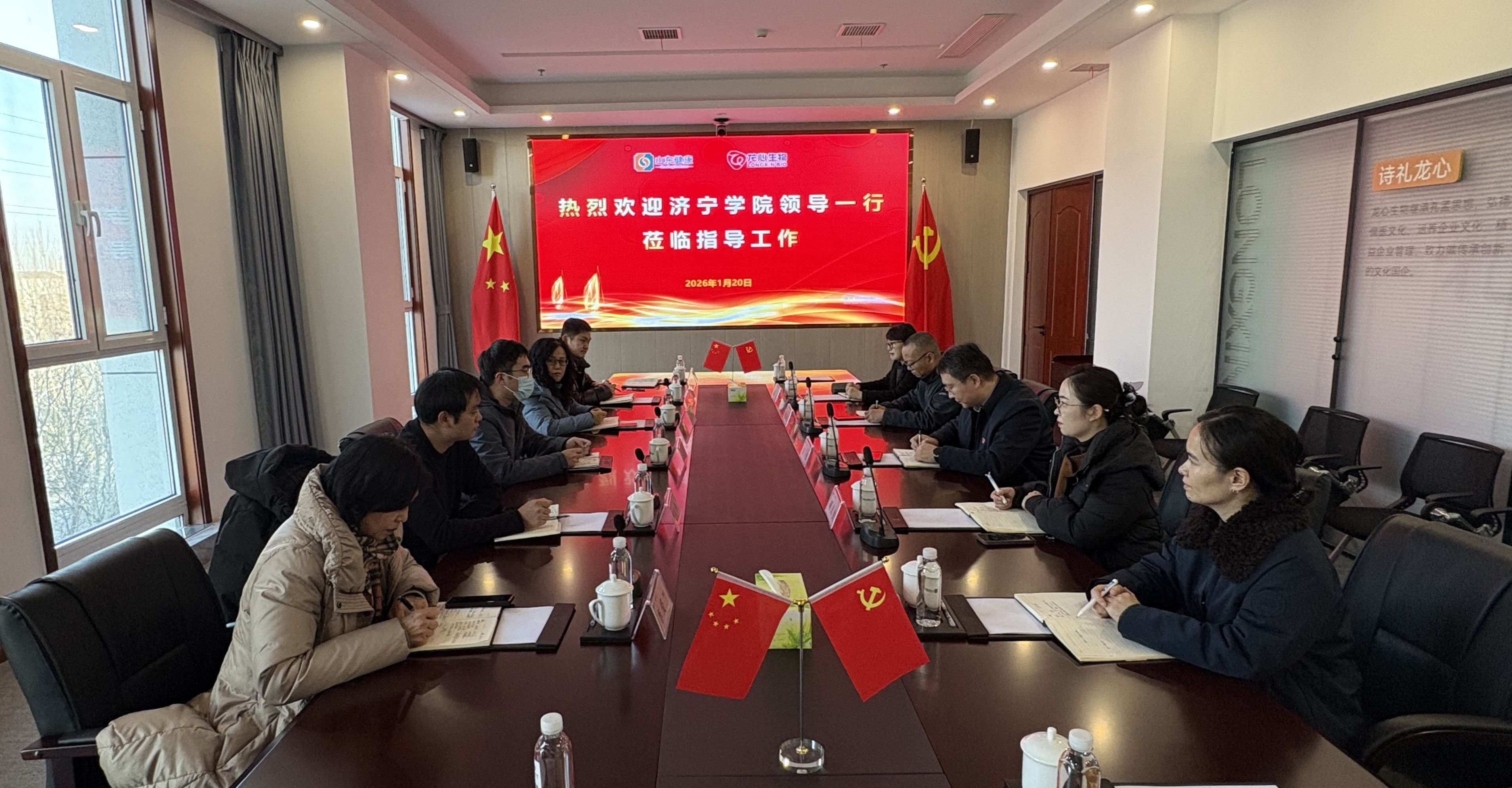 为持续深化产教融合与校企合作,精准对接行业发展实际需求,真正推动教育教学与产业发展深度融合,1月20日下午,应用型人才培养基地主任苑壮东带队前往山东鲁华龙心生物科技有限公司,就校企合作、实习就业等议题深入洽谈。应用型人才培养基地副主任李爱兰、生命科学与工程学院副院长俞海洋、院长助理崔向伟及食品教研室主任仇宏图参加活动。