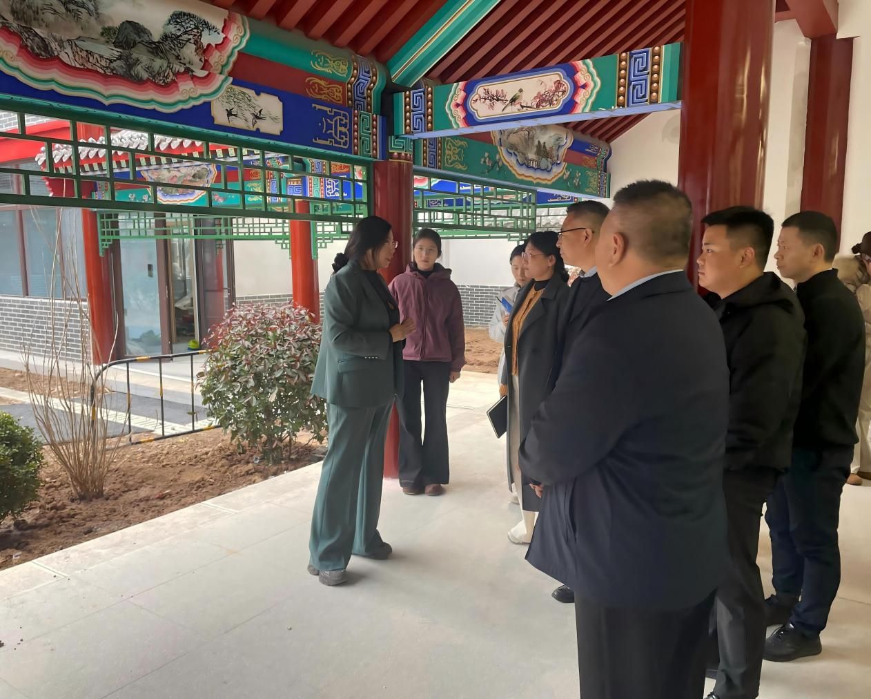 在项目现场,常广涛、徐冬梅等负责同志详细介绍了数字内容生产、文创产业孵化、实训教学场景等建设情况,特别是项目在数字产业、文化创意、产教融合等方面的创新实践与发展规划。双方围绕合作定位、学校课程嵌入、师资共建及学生实训、创业就业等方面进行了深入交流。