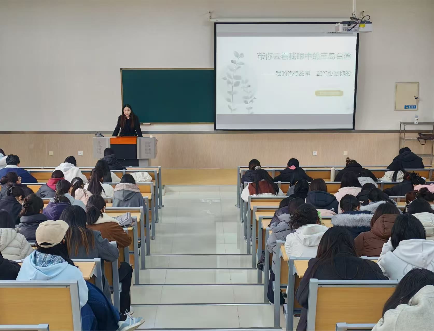 为深化海峡两岸教育文化交融,厚植青年家国情怀与民族认同,拓宽学子成长视野与实践路径,3月19日下午,人文与传播学院举办“带你去看我眼中的宝岛台湾——我的铭传故事,或许也是你的”主题讲座。讲座由人文与传播学院学术副院长刘宇颂主讲,学院团委书记倪召欣主持,2024及2025级共180余名学生到场聆听。
