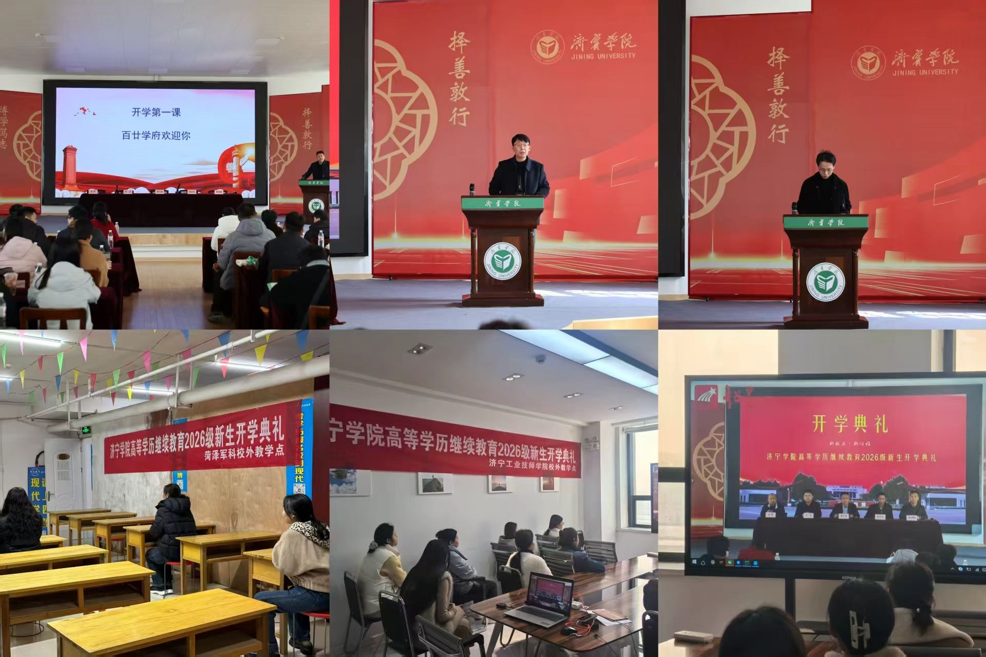 此次开学典礼暨入学教育,采用线下和线上相结合的形式。学校设主会场,部分新生代表到场参加,校外教学点设分会场组织全体新生集中观看直播。帮助新生在济宁学院开启崭新的学习之旅。希望全体新生在今后的学习生活中,不忘初心使命,学以致用,追求卓越。