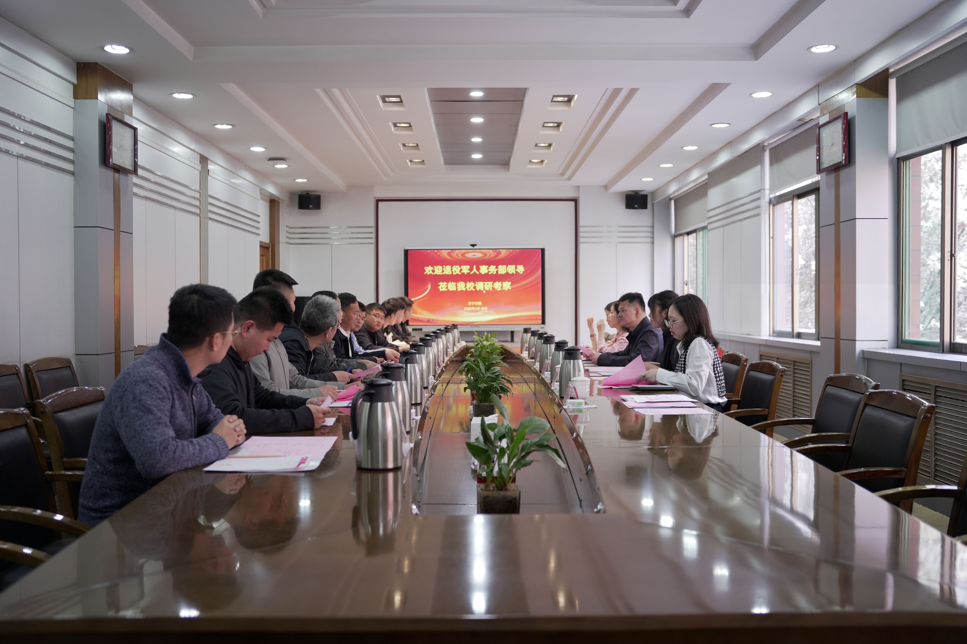 3月27日,退役军人事务部宣传中心全媒体生产处负责人刘新、事业发展处副处长胡琳、全媒体生产处记者韩筱一、编辑出版处记者宫宇凡等调研组一行来我校调研“兵教师”教育培训工作。山东省退役军人事务厅办公室主任、三级调研员赵蕾,办公室一级主任科员马斌国,济宁市退役军人事务局党组成员、副局长吕成刚,政策法规科科长张宏轩、科员翟超凡,济宁学院退役军人教育培训研发团队、山东省退役军人教育培训学院(济宁)负责人周颖、学生工作处(武装部)国防教育科科长胡敏以及“兵教师”培训学员参加座谈。