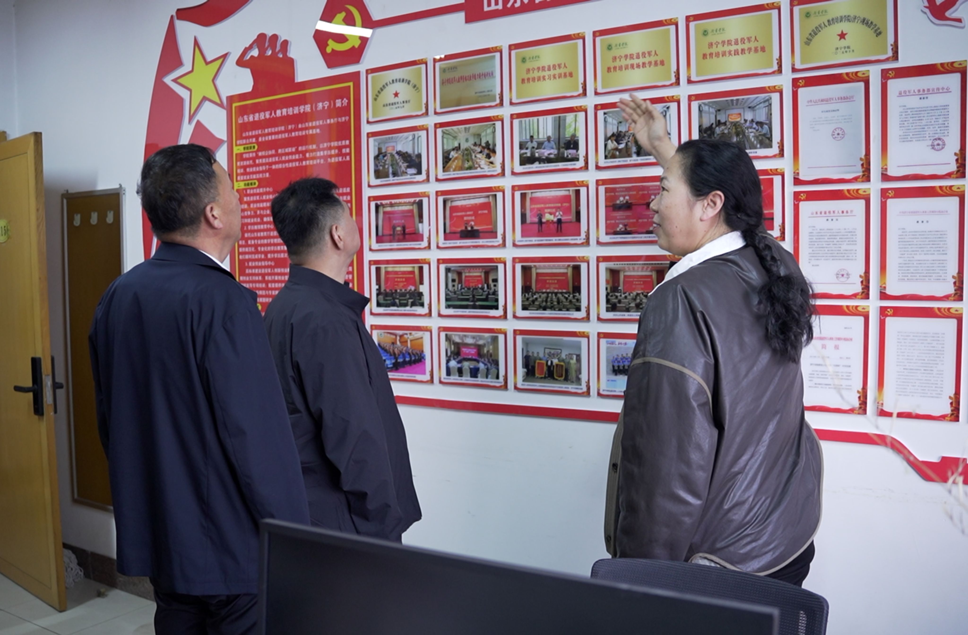 座谈会后,调研组一行实地察看了山东省退役军人教育培训学院(济宁)教学场地,详细了解学院“兵教师”培训课程体系、教学模式、师资配备、档案管理等情况。