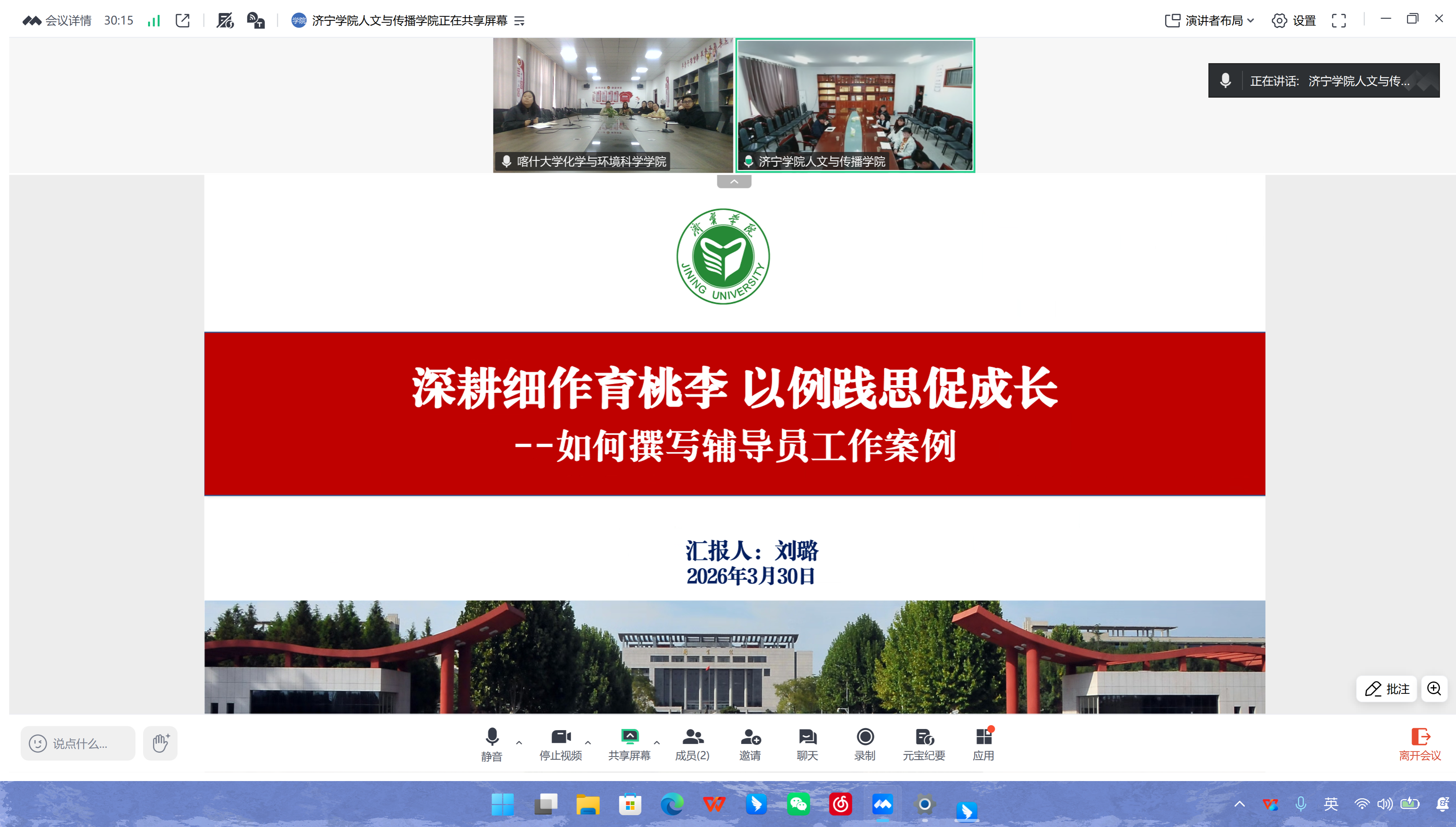 3月30日,鲁疆高校辅导员工作案例撰写辅导交流会线上顺利举办。我校人文与传播学院党委书记王永超、喀什大学化学与环境科学学院党委副书记皮宗辉出席会议,两院全体辅导员参与交流。