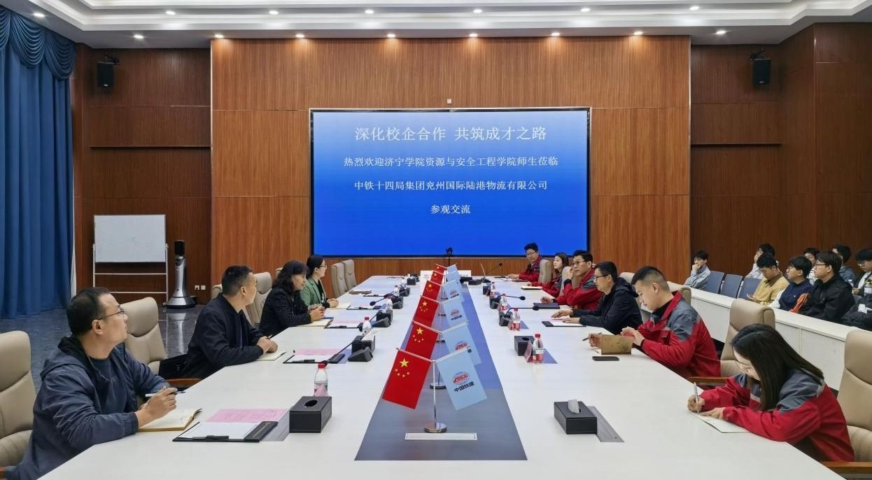 为深化产教融合、校企合作协同育人,破解毕业生就业信息不对称难题,拓宽毕业生就业渠道,4月9日,资源环境与安全工程学院党委书记唐秋晶,副书记李芬,学术副院长王飞,办公室主任丰立柱,辅导员贾艳丽及2026届毕业生代表赴中铁十四局集团兖州国际陆港物流有限公司开展专项对接活动,公司党支部书记庄庆胥,市场部总经理王杰,北方区域经理郭浩,山东区域经理李志强陪同交流。
