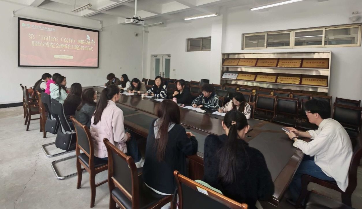 为保障2026山东(嘉祥)国际冰雪服饰博览会顺利开展,充分发挥外国语学院专业优势,展现青年学子良好风貌,4月10日中午,外国语学院在一楼会议室组织开展博览会翻译志愿者面试选拔工作。学院党委副书记文灿、团委书记姜璨及学生会骨干组成评审团,对报名学生进行全面考核,为展会选拔高素质翻译服务人才。