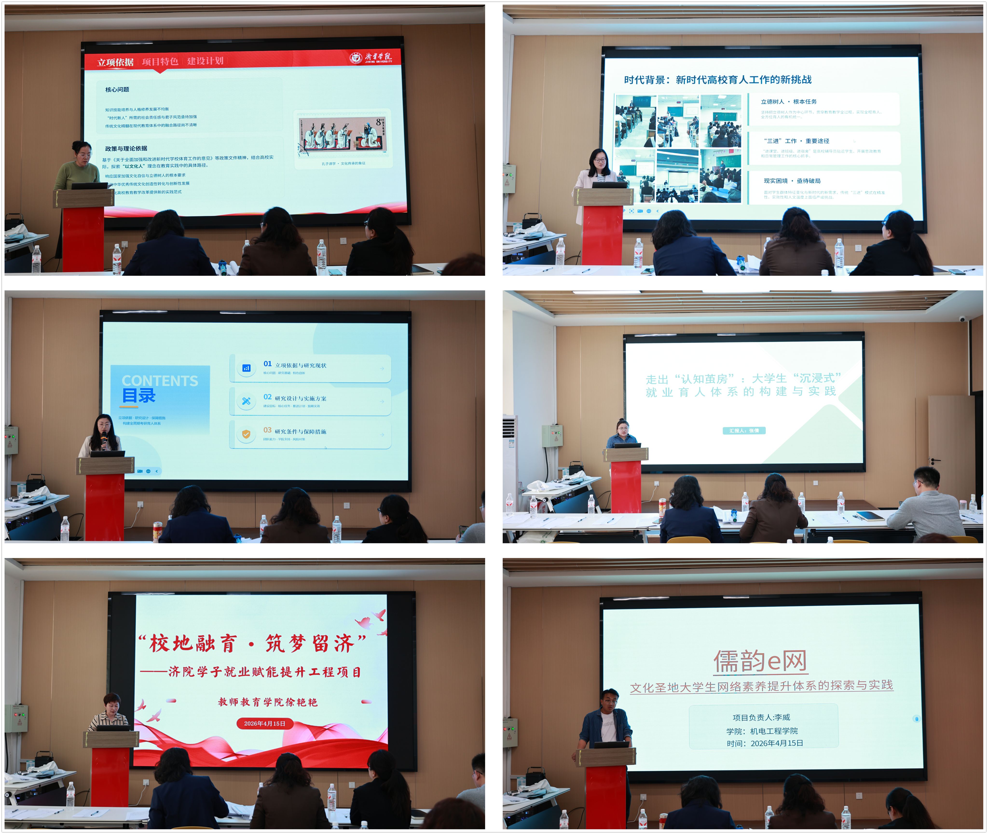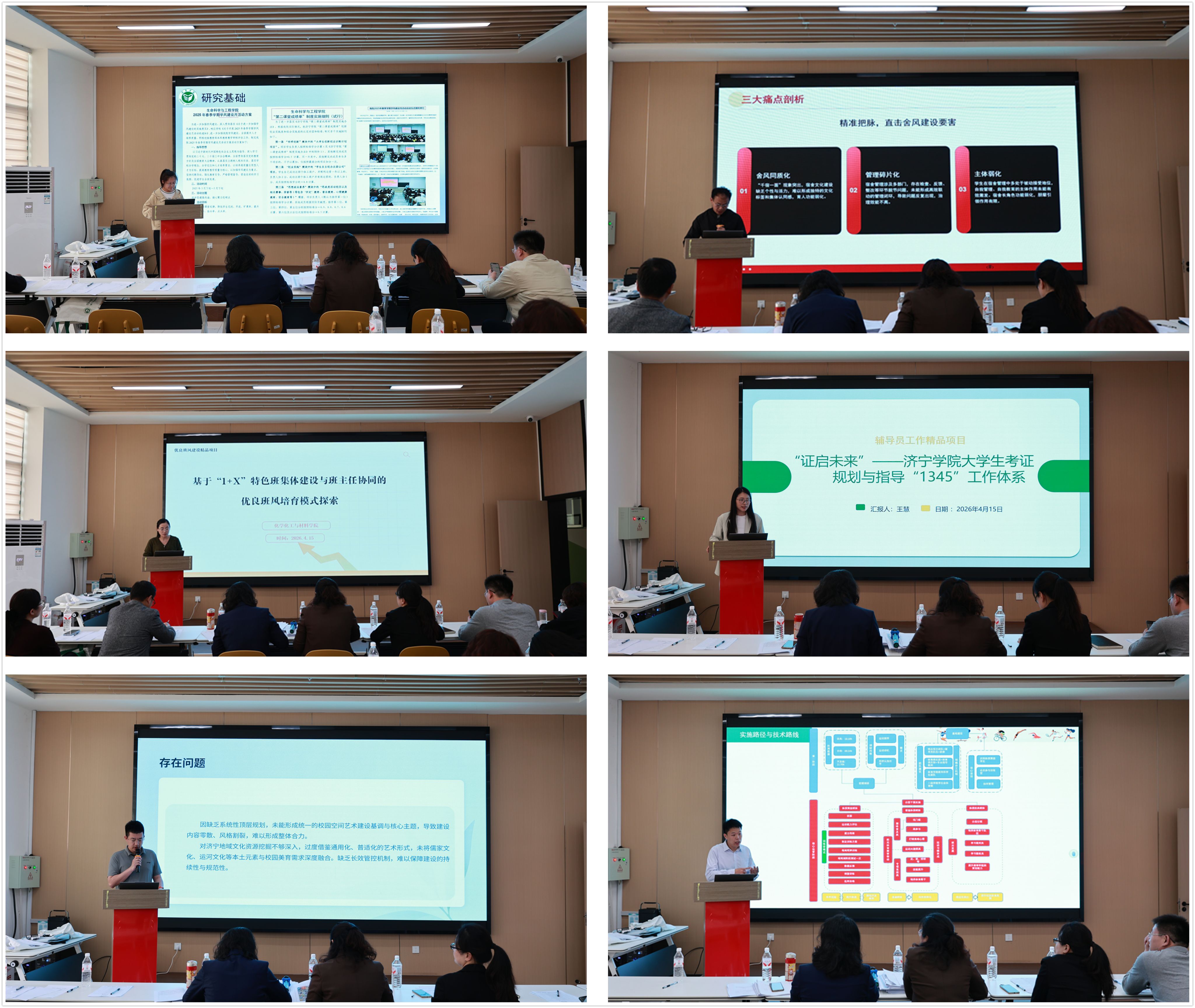 近日,学生工作处组织开展2026年辅导员“揭榜挂帅”项目评审工作。本次评审涵盖辅导员工作室、精品项目、骨干课题三大类别,其中辅导员工作室、精品项目实行现场汇报答辩,骨干课题采取材料评审方式开展。